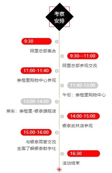 考察僅限數(shù)字商業(yè)分會成員企業(yè),歡迎會員企業(yè)的高層報名參加,限額40名,先報先得。分會會員本人參加免費(住宿自理),非會員本人參加,需繳費300元/人,包括18日午餐及親橙里至銀泰的交通等相關(guān)組織費用。