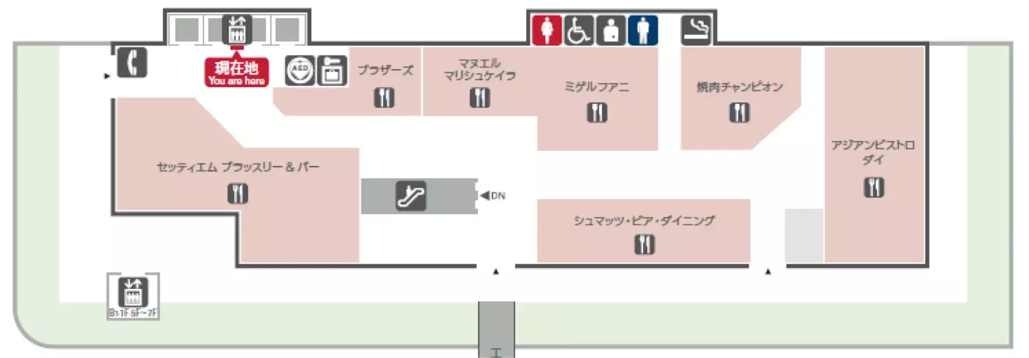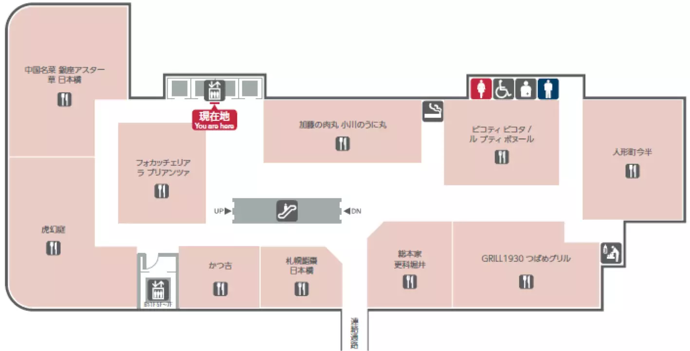 日本橋高島屋.SC的7F與本館相連,相連后的7F的面積為5000多平方米,聚集了30多家受顧客歡迎的餐廳,也是整個日本橋新館項目的重點區域。高島屋.SC在規劃建設的最初,希望通過在頂層打造一個這樣的空間,產生客流的“淋浴效應”,使顧客由上而下流動起來。