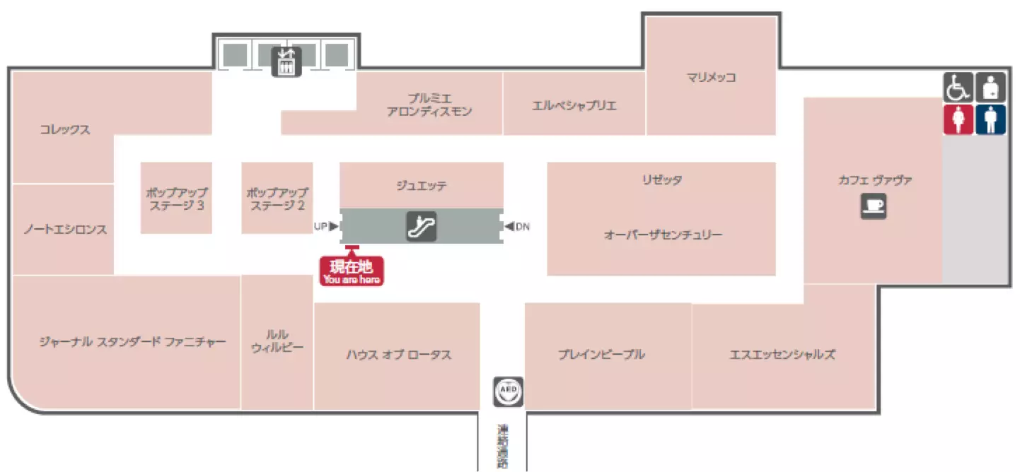 3F匯集了可以豐富日常生活的生活方式品牌,并持續定期更換hope up stage以引領風尚。2F,3F將一些服飾與雜貨等商品組合起來,進行提案式販賣。