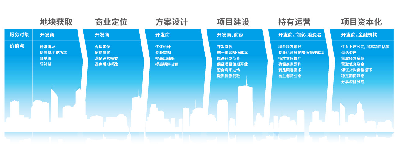最后我給大家再梳理一下,因為愛琴海作為一個輕資產管理四,是從頭到尾這個鏈條蠻長的,我們從地塊的獲取到商業定位再到方案的設計,再到項目的建設,持有運營,最終項目資本化全部可以完成,比如一開始你沒多少錢,但你有一個信息,說我要做這件事,你有一定的社會資源,可能愛琴海從頭跟你一直走到尾,最后賺了多少錢也是門清,這就是一個資產運營者在運營團隊的做法。