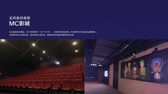 MC國際影城按五星級標(biāo)準(zhǔn)建設(shè),共8個豪華影廳(含1個VIP廳),全3D廳,均采用世界先進(jìn)的RealD 3D系統(tǒng),可同時容納近1500人。全部采用舒適座椅,高起坡大銀幕(其中兩個廳的幕布面積超100平方),所有幕布均為高品質(zhì)金屬銀幕,全部采用進(jìn)口放映設(shè)備,配全數(shù)碼還原音響,擁有身臨其境般的震撼視聽效果。