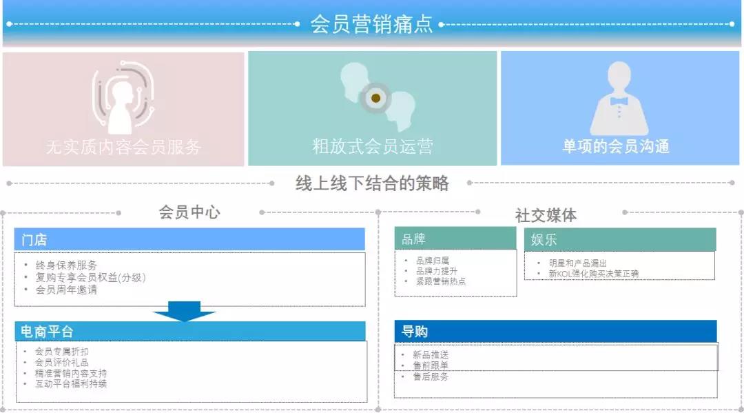 同時我們既然有這么多銷售部分,還有這些產品,包括一些活動,我們更希望干嘛呢?更希望建立一個社群,這個社群通過內容來跟消費者溝通,進行引流,因為現在是一個電商時代,都在談內容電商,包括短視頻電商,李佳琪做一場活動基本上賣兩千萬,來通過這種形式更強,現在看抖音的人非常多,所以我們也會借助這些手段,讓顧客有更好的服務。這個基本上就是我的一個會員模式。