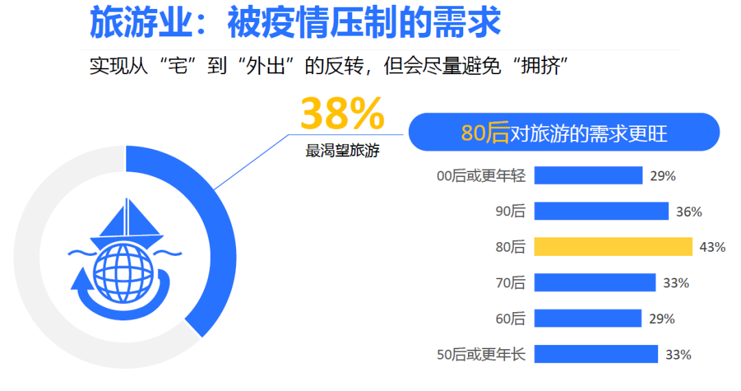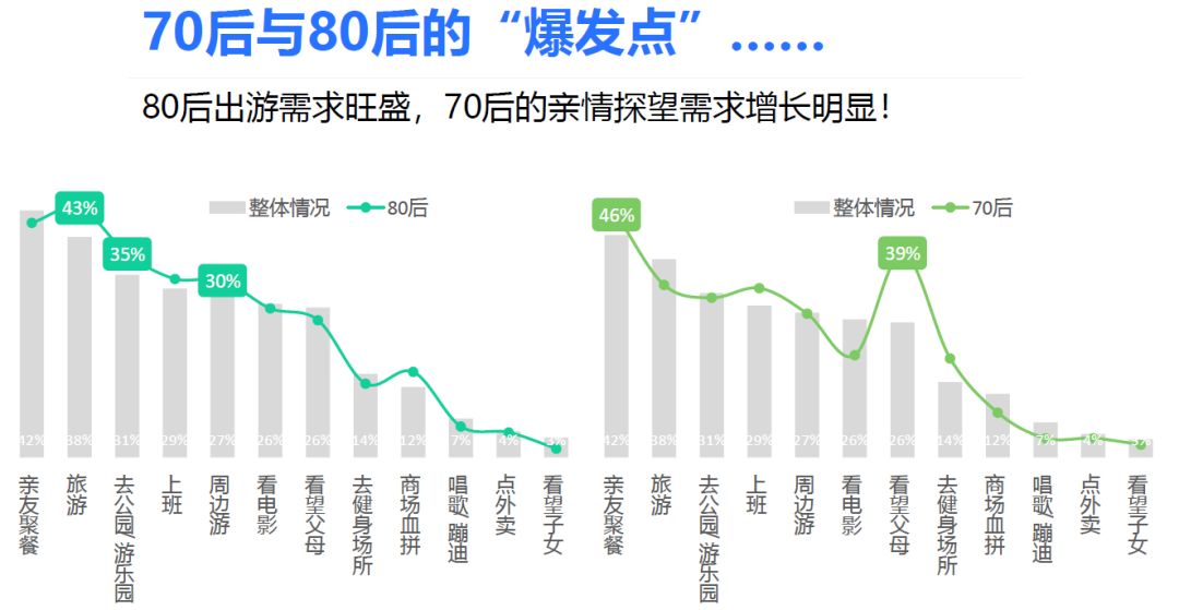 80后對離開家去旅行的需求旺盛;50后表現為周邊游機會點